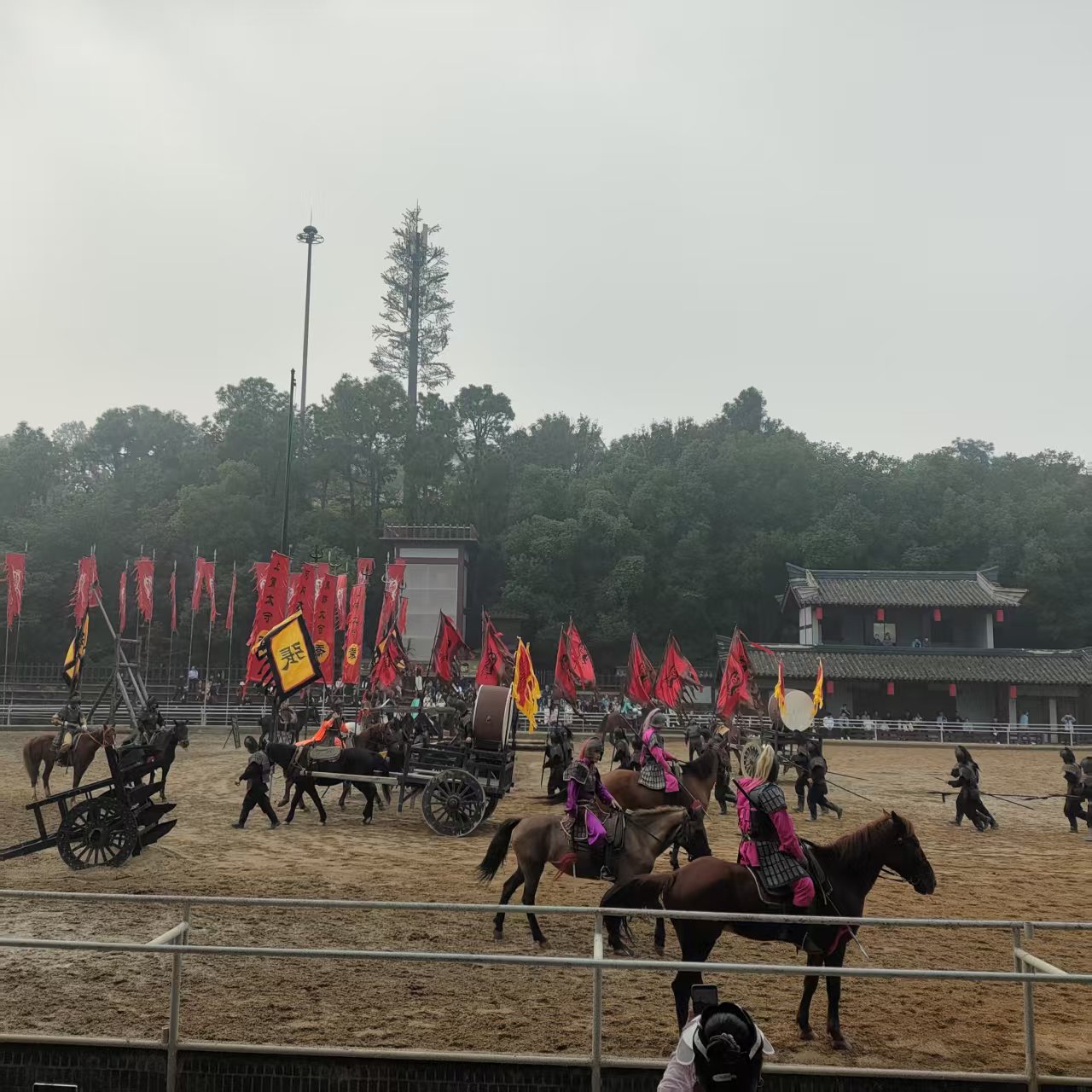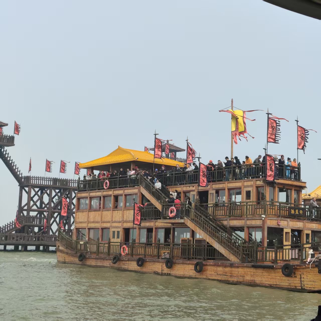 第一天,我们怀着期待的心情,游览了充满历史韵味与文化积淀的三国城和水浒城,一路深切感受到了中华传统文化的独特魅力与深厚底蕴。在三国城中,我们不仅观赏了场面宏大、扣人心弦的“三战吕布”马戏表演,演员们精湛的骑术和激烈的对战令人叹为观止;还乘坐古色古香的游船,在波光粼粼的太湖上缓缓而行,尽情领略了湖光山色的秀丽与宁静。随后,我们转至水浒城,漫步于石板铺就、建筑古朴的街道,两旁的仿宋式楼阁、酒肆和镖局,仿佛将我们带回了那个义薄云天、豪杰并起的年代。大家还踊跃参与了景区精心设置的互动体验项目,如角色扮演、射箭、投壶等,进一步沉浸式地感受了水浒文化的英勇与豪情,体验了古人的生活情趣。