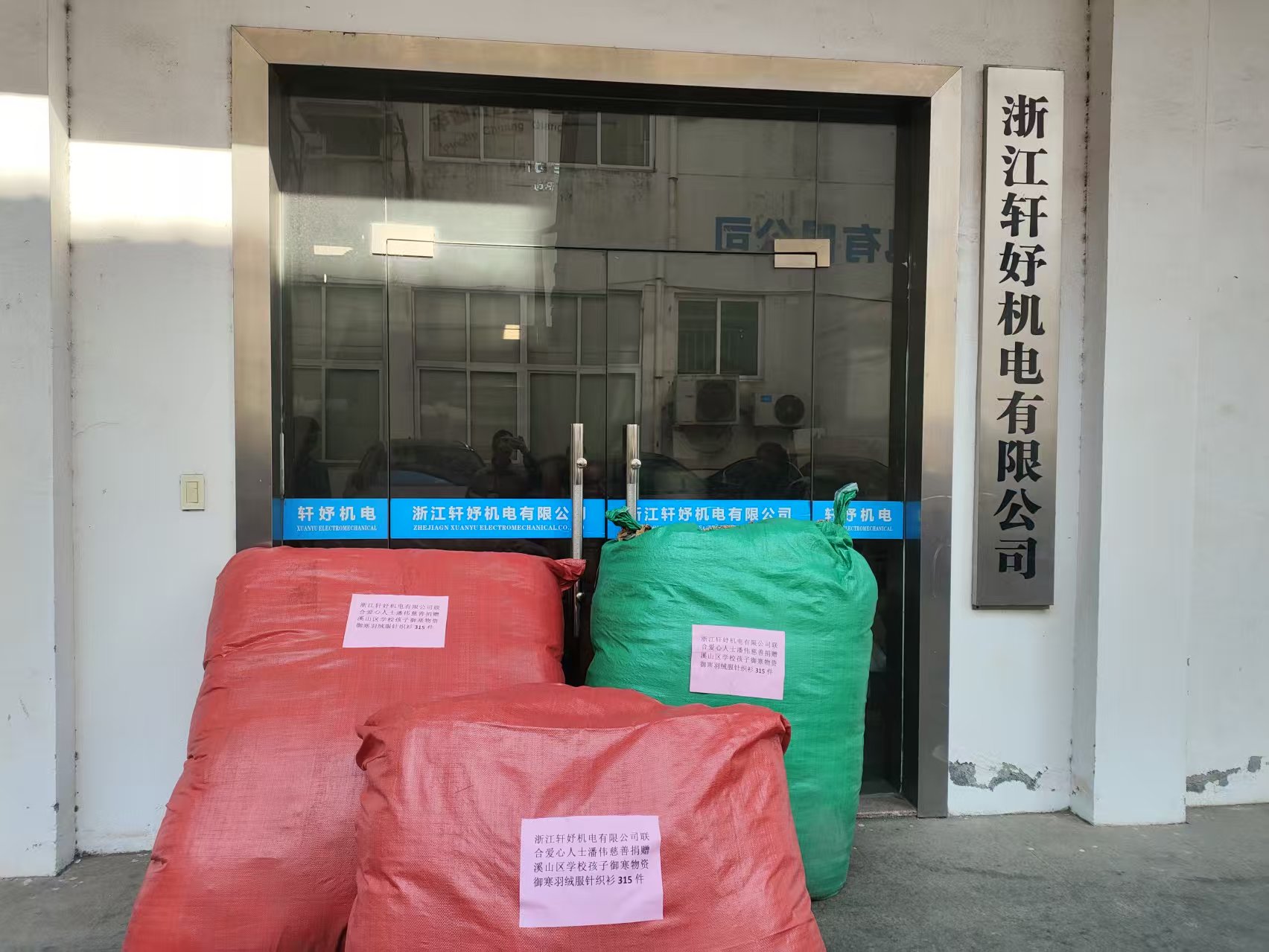 今日,浙江轩妤机电有限公司门前,三个鼓囊囊的包裹正整装待发,准备踏上远途——这便是今年的“冬日暖衣计划”:浙江轩妤机电携手慈善人士潘伟,为山区学校捐赠了315件羽绒服和针织衫。